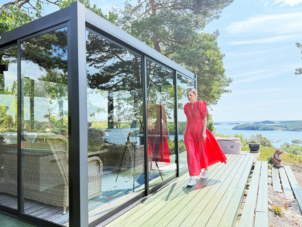 Glassdører holder vinden ute – ved sjøen blåser det ofte, så da er det fint å lukke dørene mot vinden
